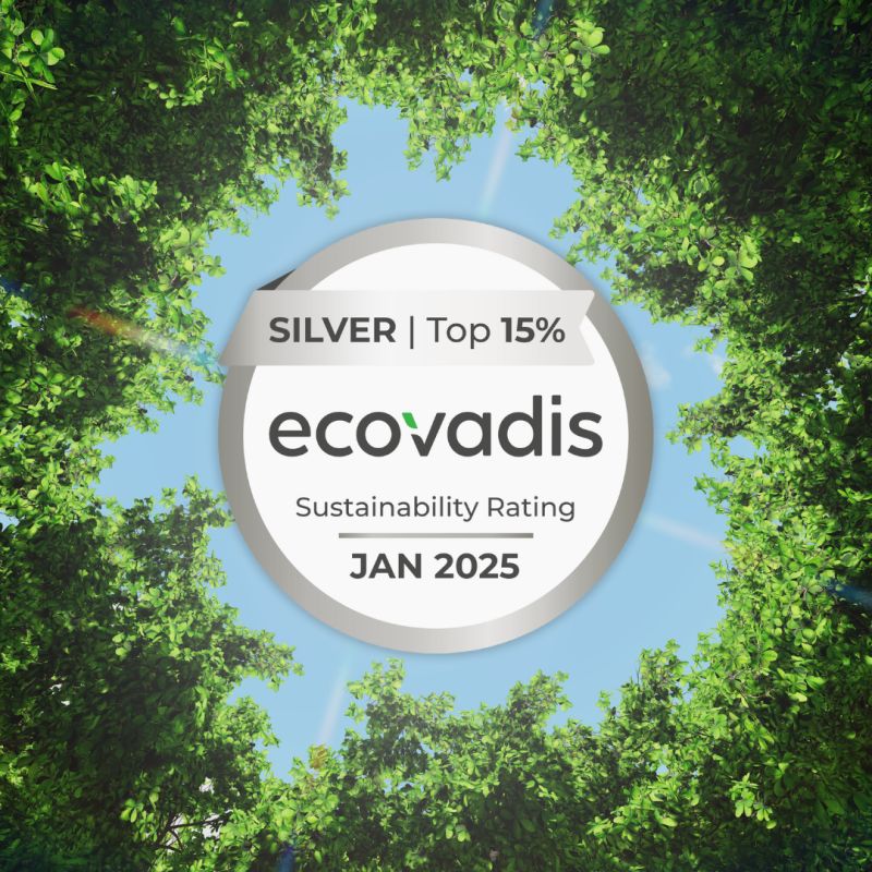 Η δέσμευσή στη βιώσιμη ανάπτυξη αναγνωρίστηκε με το Αργυρό Μετάλλιο από τον διεθνή φορέα αξιολόγησης EcoVadis, κατατάσσοντάς μας στο 15% των κορυφαίων εταιρειών που αξιολογήθηκαν παγκοσμίως.